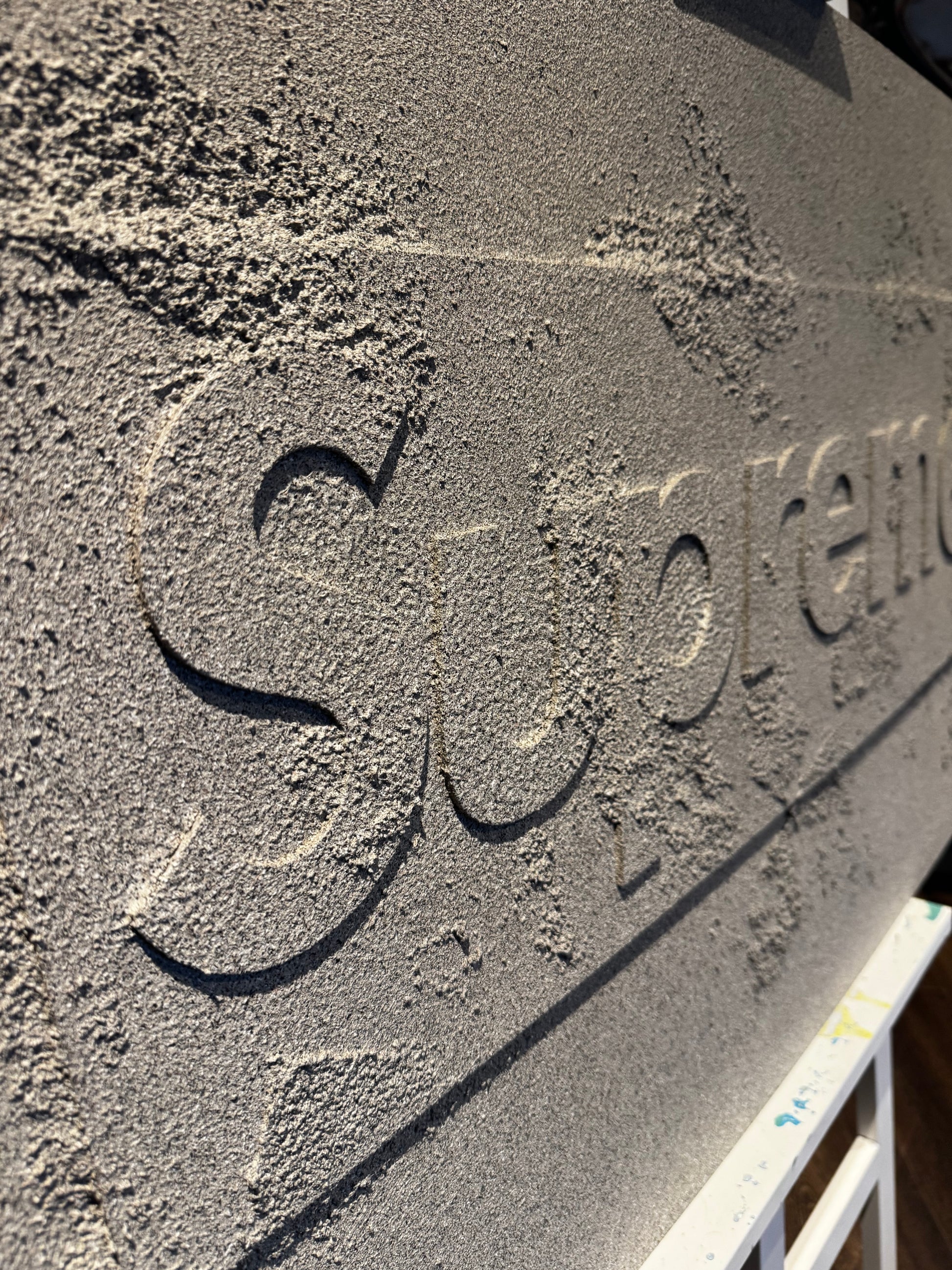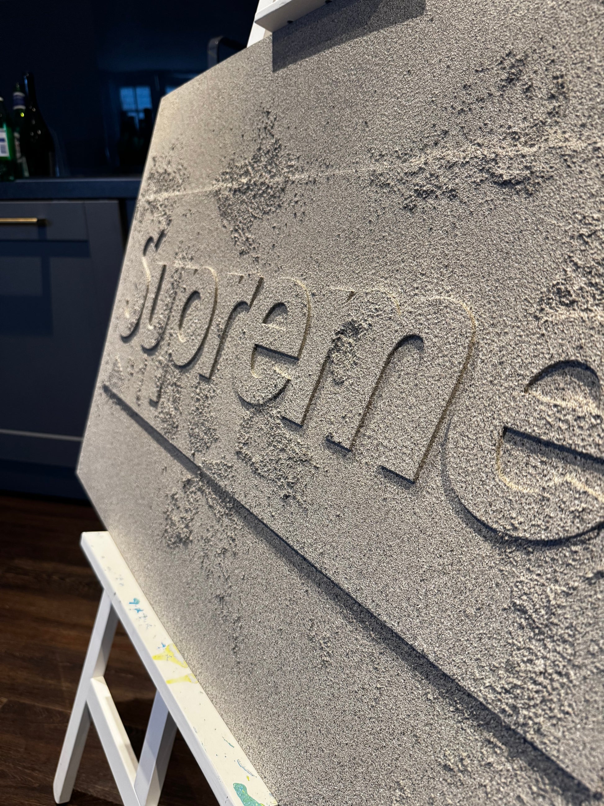 'Supreme' - Handmade original painting onto 5mm acrylic inclusive of 3D letters. Concrete matt finish sized at 900mm x 600mm x 10mm depth.